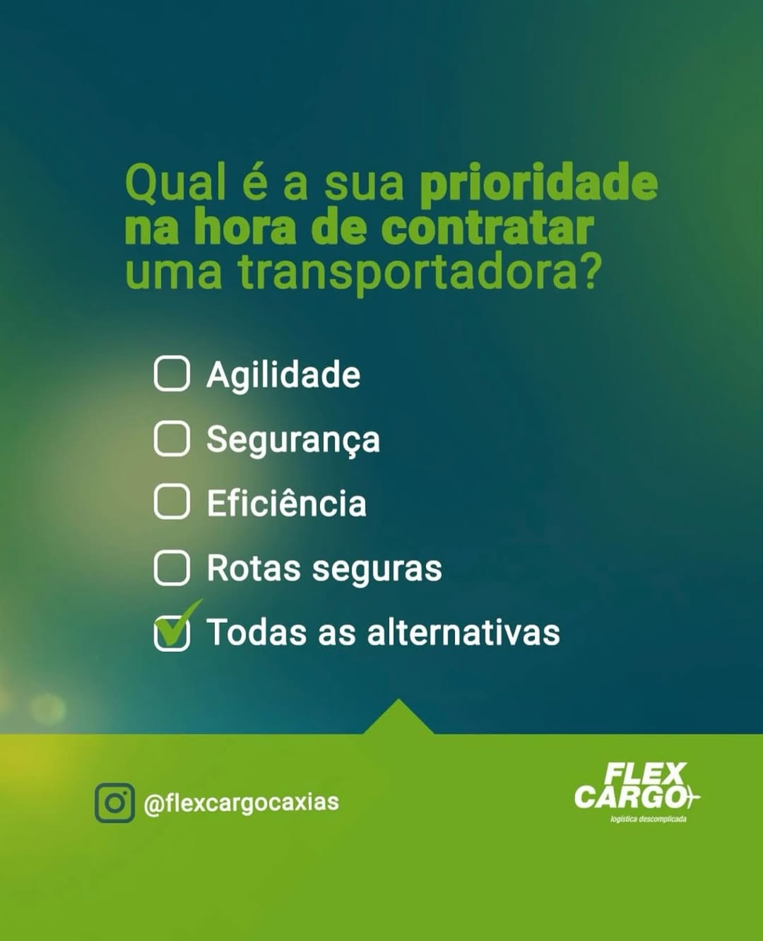 Se a resposta é “todas as alternativas”, a solução é a FlexCargo! Aqui, sua carga chega rápido, com segurança e eficiência, sempre pelos melhores caminhos.